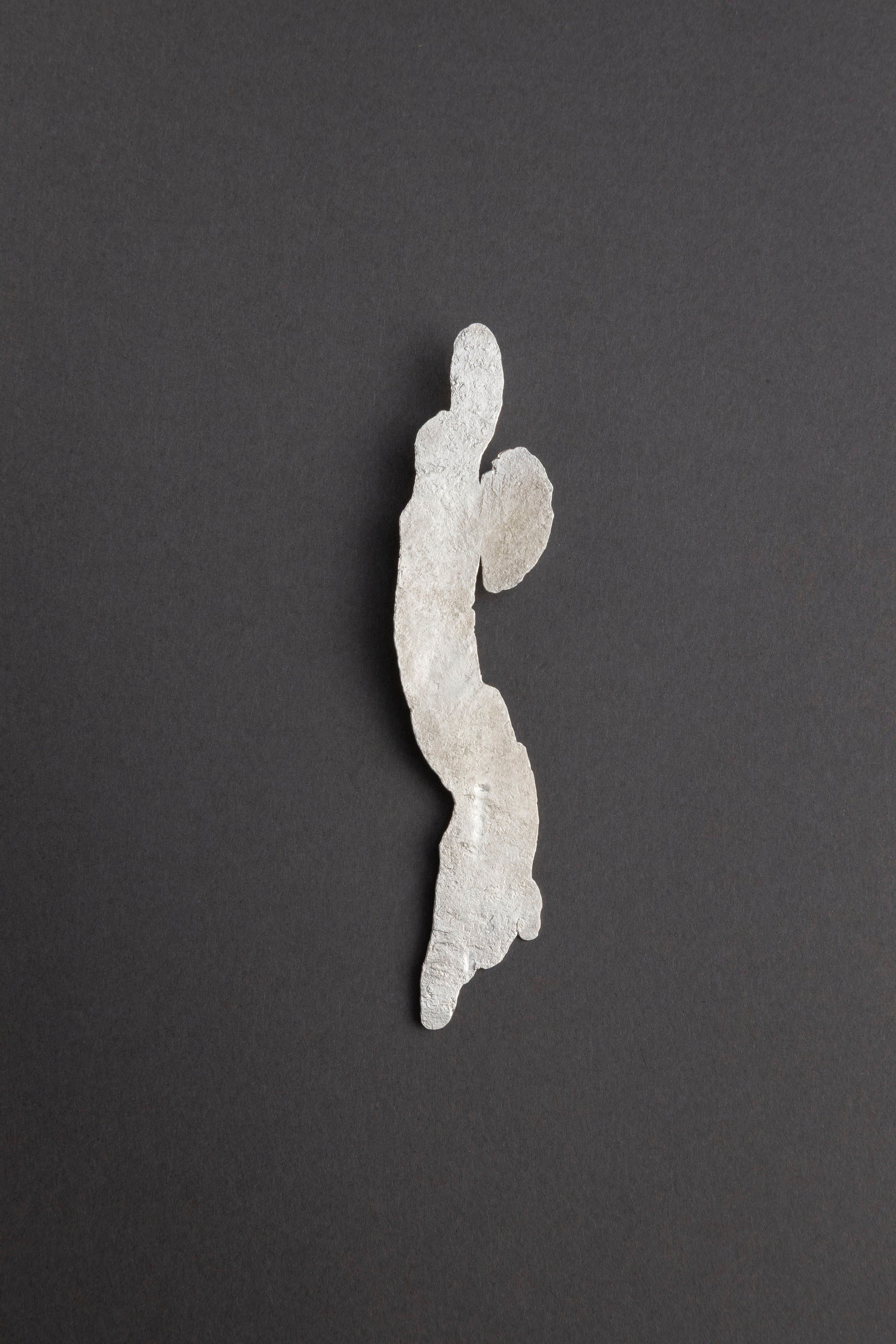 Pieza única en plata martillada con herramientas de piedra. La forma nace de mantener la irregularidad orgánica de la plata y dejar que la piedra y el tiempo definan su carácter.